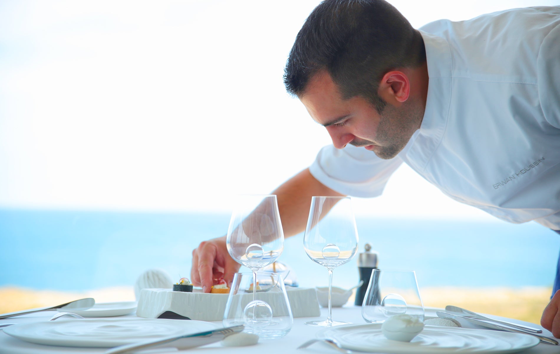 Restaurant étoilé Le Grand Cap, une évasion culinaire en bord de mer, où Erwan Houssin et son épouse Pamela, pâtissière, subliment les saveurs locales.