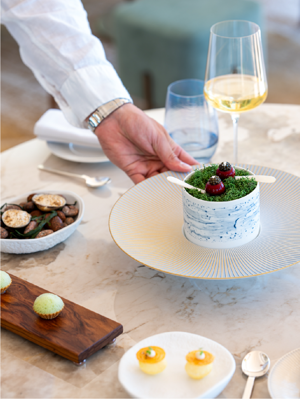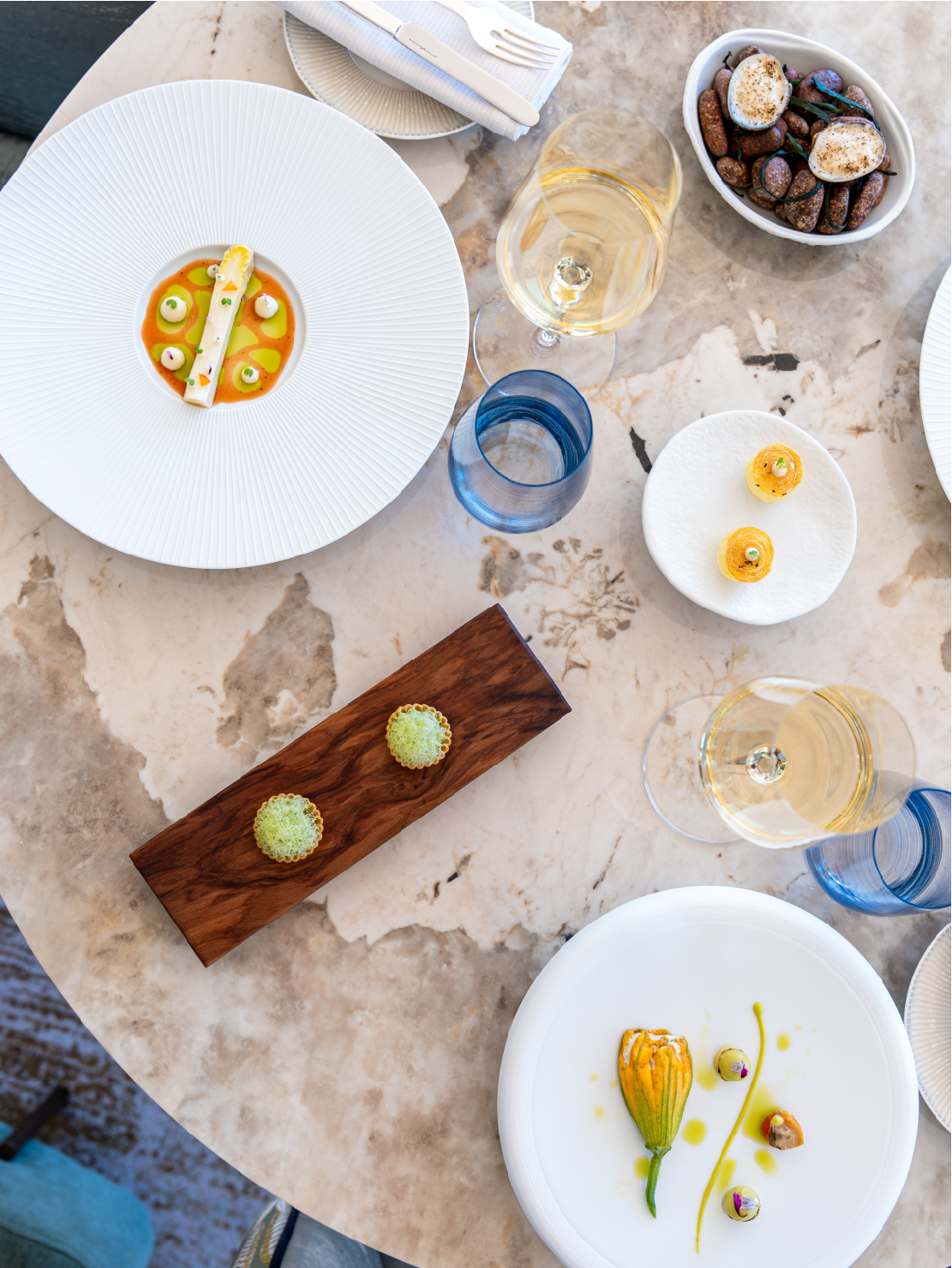 L'Or Bleu, restaurant étoilé du Tiara Yaktsa, offre une cuisine méditerranéenne raffinée dans un cadre époustouflant.